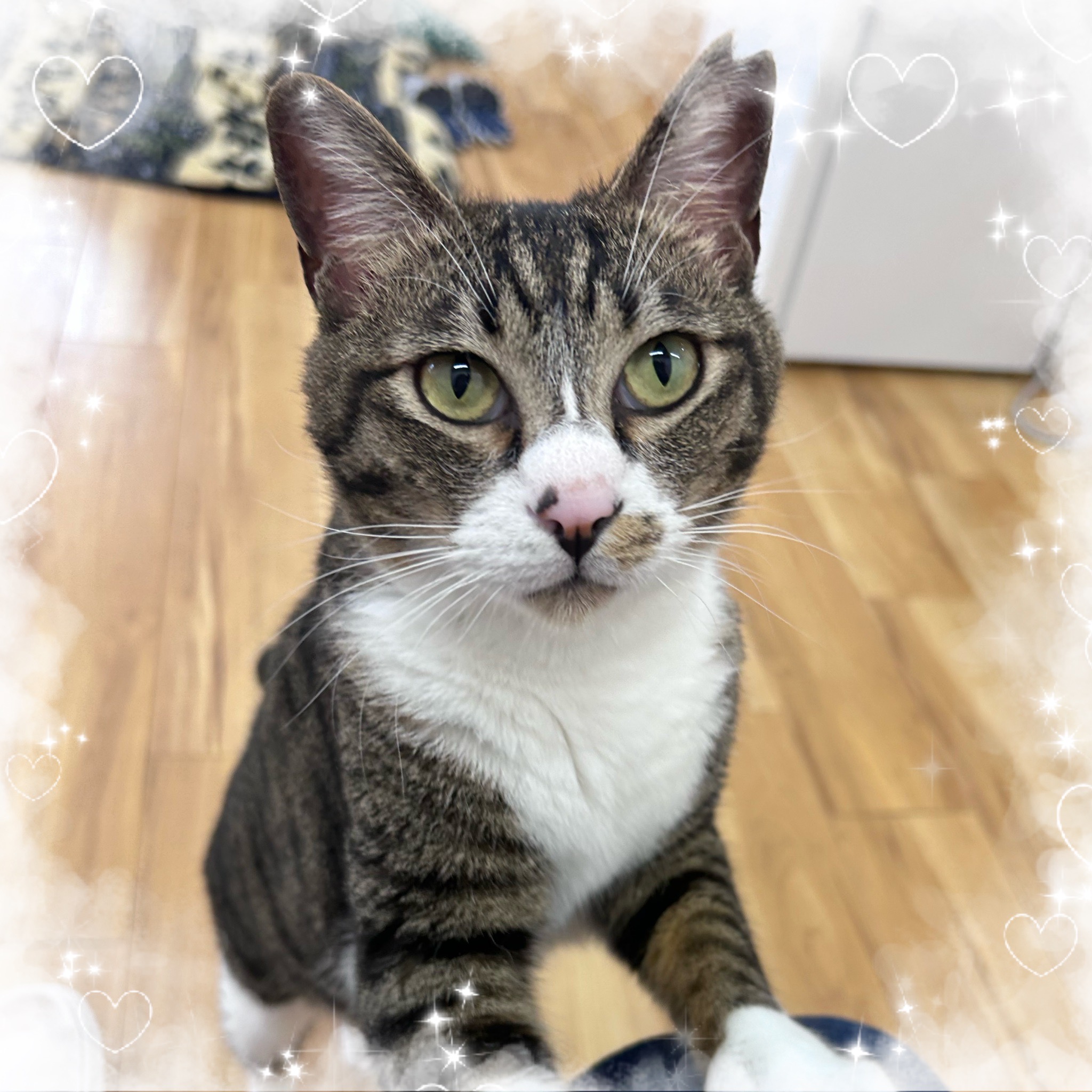 チャームポイントは、おちょぼなお口。少しビビりな一面もありますが、おもちゃで遊ぶのが大好きで、他の猫ともケンカせずに仲良くできる優しい性格です🐾