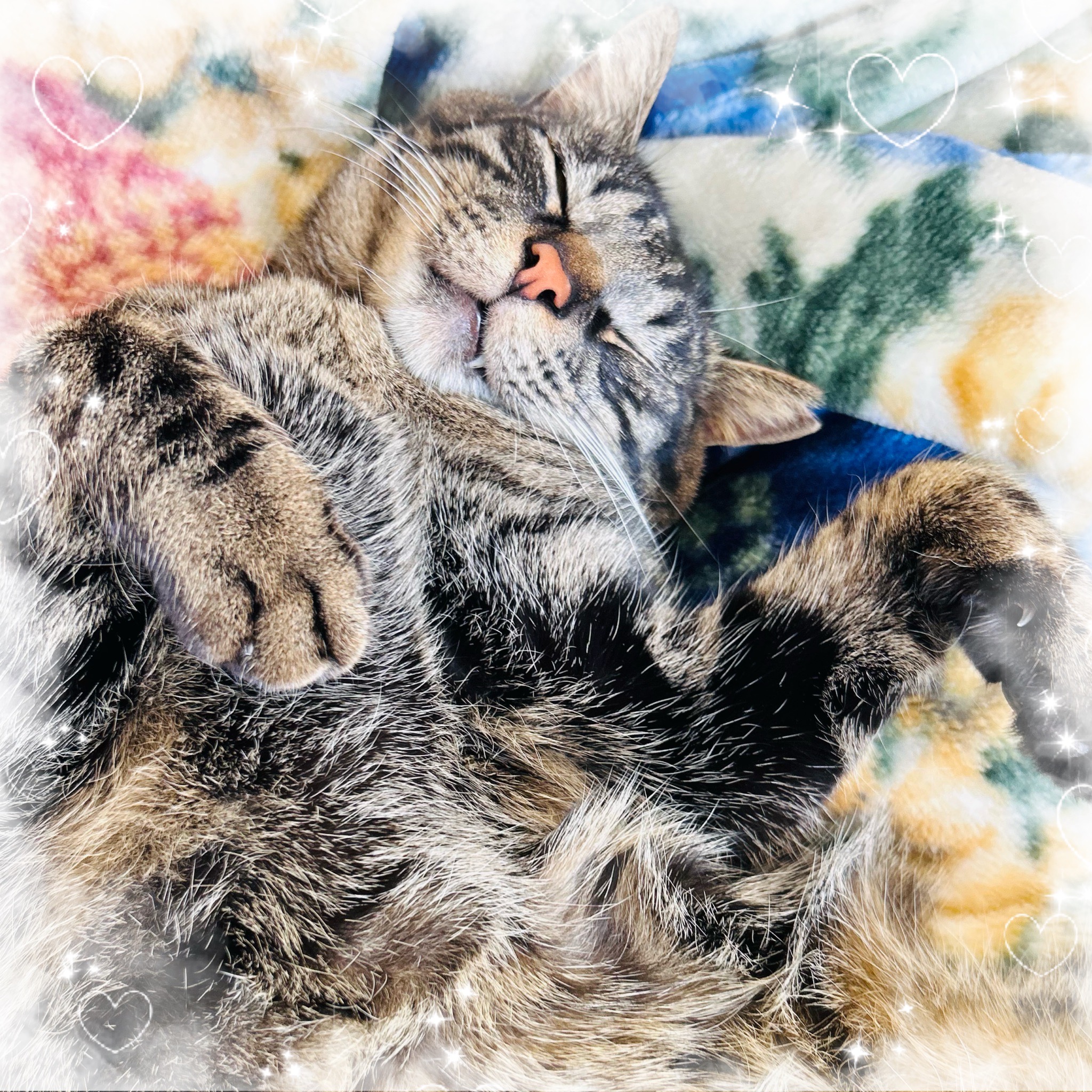 せんちゃんは、まん丸なお顔がとってもキュートな猫ちゃん💖 少しハスキーな声で鳴く姿は、思わず「可愛い!」と言いたくなっちゃいます。おもちゃ遊びが大好きで元気いっぱい、ご飯もたくさん食べてくれる食いしん坊さん🍚✨ そして、ひなたぼっこが大好きで日差しの中で気持ちよさそうにしている姿は、まるで小さな太陽のように周りをぽかぽかにしてくれます☀️